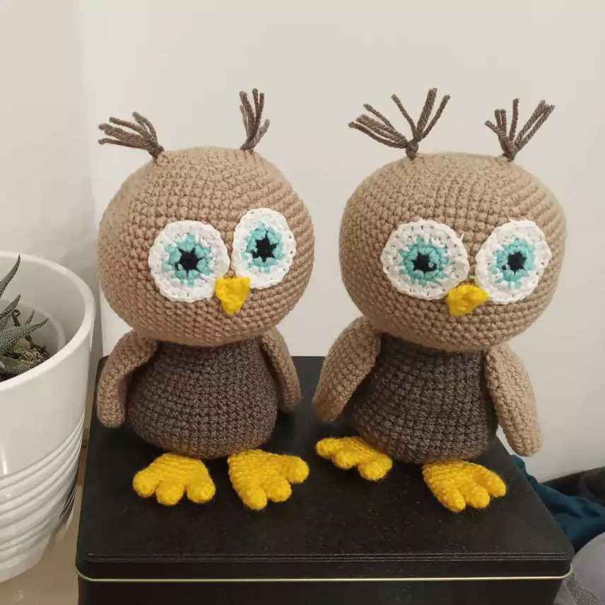 Az Amigurumi bagoly választható színű és anyagú fonalból készül.